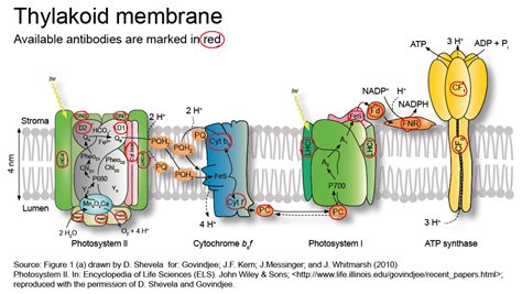 光合色素吸收光能后,把能量聚集到反應(yīng)中心(葉綠素a分子),引起電荷分離和光化學反應(yīng)。一方面將水氧化,放出氧氣;另一方面把電子傳遞給輔酶II(NADP+),將它還原成NADPH,其間經(jīng)過一系列中間載體。光合電子傳遞的主要載體有質(zhì)體醌(PQ)、細胞色素b6(Cytb6)、質(zhì)藍素(PC)、鐵氧還素(Fd)、Fd-NADP還原酶(FNR)。目前普遍接受的光合電子傳遞途徑為Z形方案,認為光合電子傳遞鏈是由PSI和PSII以及連接兩個光系統(tǒng)的一系列電子載體組成,電子傳遞鏈上各個載體按其氧化還原電位高低,成Z形串聯(lián)排列。電子傳遞載體相關(guān)抗體見下表(僅列舉部分產(chǎn)品):