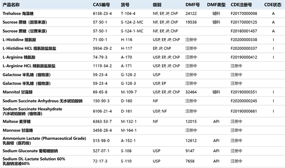 Pfanstiehl高純度低內(nèi)毒素注射用糖類及氨基酸等十余種輔料產(chǎn)品。Pfanstiehl成立已有百余年歷史,專注于注射用輔料研發(fā)和生產(chǎn),產(chǎn)品包括海藻糖、蔗糖、甘露醇、精氨酸、精氨酸鹽酸鹽、組氨酸、組氨酸鹽酸鹽等。Pfanstiehl所有產(chǎn)品支持CDE登記注冊(cè),并且海藻糖和蔗糖已經(jīng)處于激活狀態(tài);