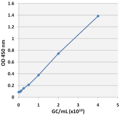 下圖展示了AAV滴度檢測(cè)試劑盒的標(biāo)準(zhǔn)曲線結(jié)果。