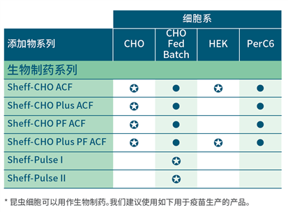其中Sheff-CHO系列是一系列針對CHO細胞的非動物源性復合添加物,它在提高細胞密度、維持細胞活力和促進蛋白產(chǎn)物表達方面有顯著作用,已經(jīng)過全球生物制藥巨頭公司與國內(nèi)企業(yè)廣泛驗證,是中國CRO和企業(yè)客戶培養(yǎng)基優(yōu)化首選產(chǎn)品。
