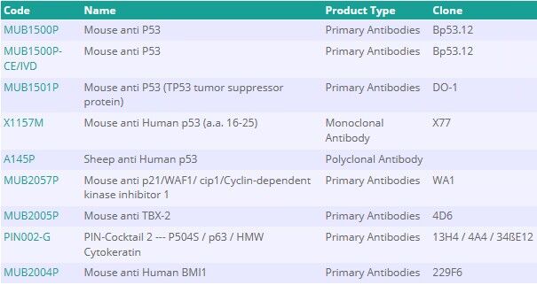 西美杰代理的Nordic-MUbio品牌提供了大量與p53蛋白相關(guān)的抗體產(chǎn)品,這些產(chǎn)品在癌癥領(lǐng)域的研究中發(fā)揮著重要作用。這些抗體的研究方向涵蓋了細(xì)胞周期、癌癥、細(xì)胞結(jié)構(gòu)、腫瘤學(xué)、細(xì)胞凋亡、感染性疾病、CD maker、細(xì)胞粘連、酶、細(xì)胞外基質(zhì)和干細(xì)胞等多個領(lǐng)域。為了方便客戶進(jìn)行搜索,小編整理了部分與p53蛋白相關(guān)的抗體產(chǎn)品列表: