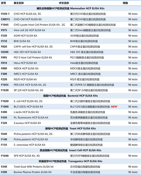 Cygnus宿主細胞蛋白(HCP)檢測系列