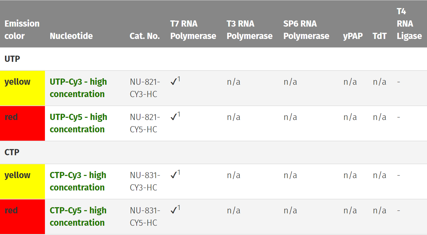 西美杰代理的Jena Bioscience品牌現(xiàn)在能提供用于DNA和RNA非放射標(biāo)記的濃度為10mM的Cy3-,Cy5- 和濃度為5mM的Biotin- 標(biāo)記的核苷酸。