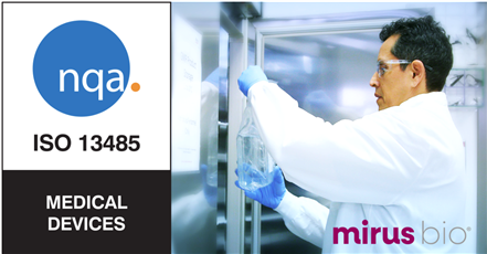 Mirus Bio’s Quality Management System (QMS) is ISO 13485-certified, enabling technology transfer and distribution of GMP-grade ancillary materials.